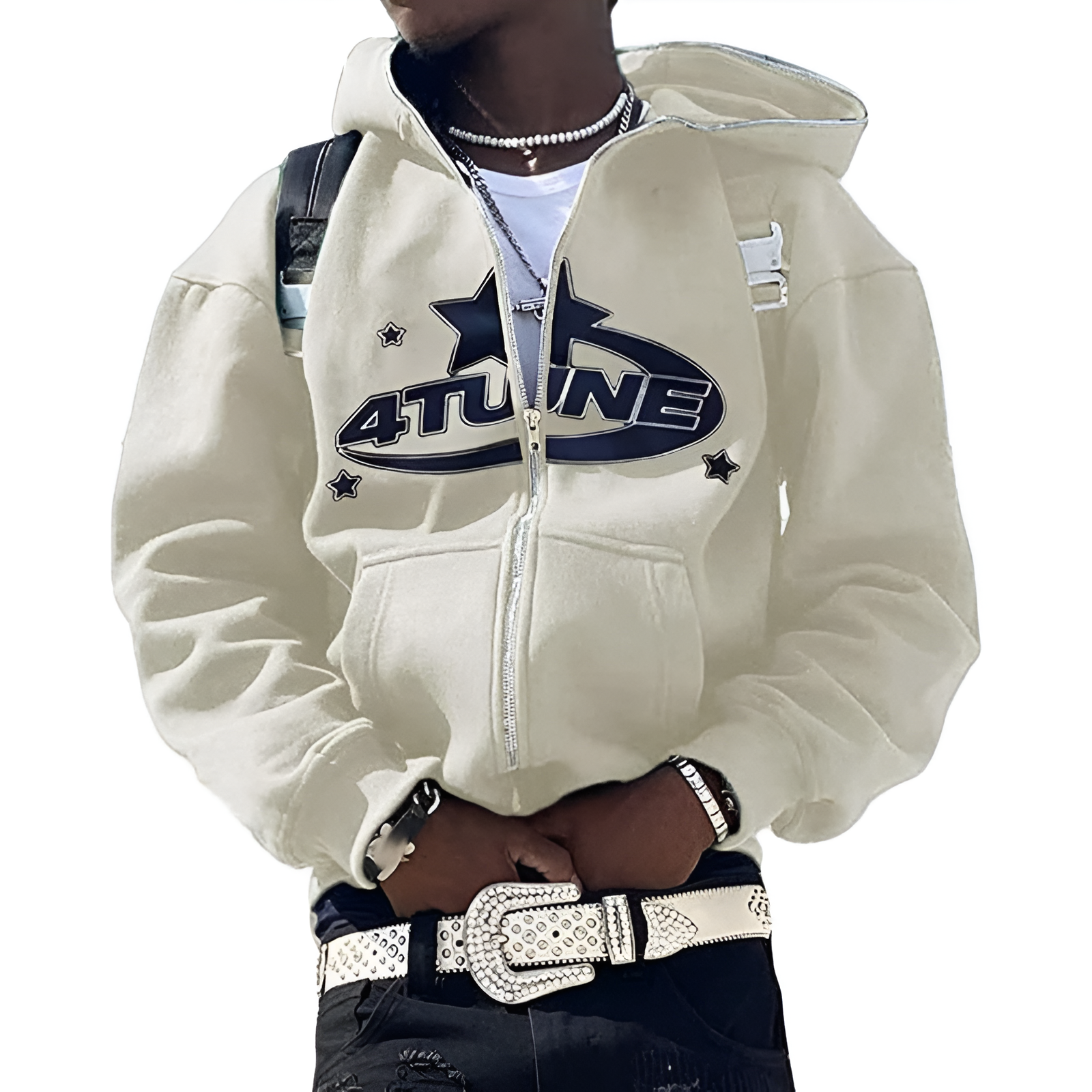 Mergulhe no universo Y2K com o Full Zip 4Tune White Y2K. Moderno e urbano, este top Y2K é essencial para qualquer guarda-roupa que procura originalidade.